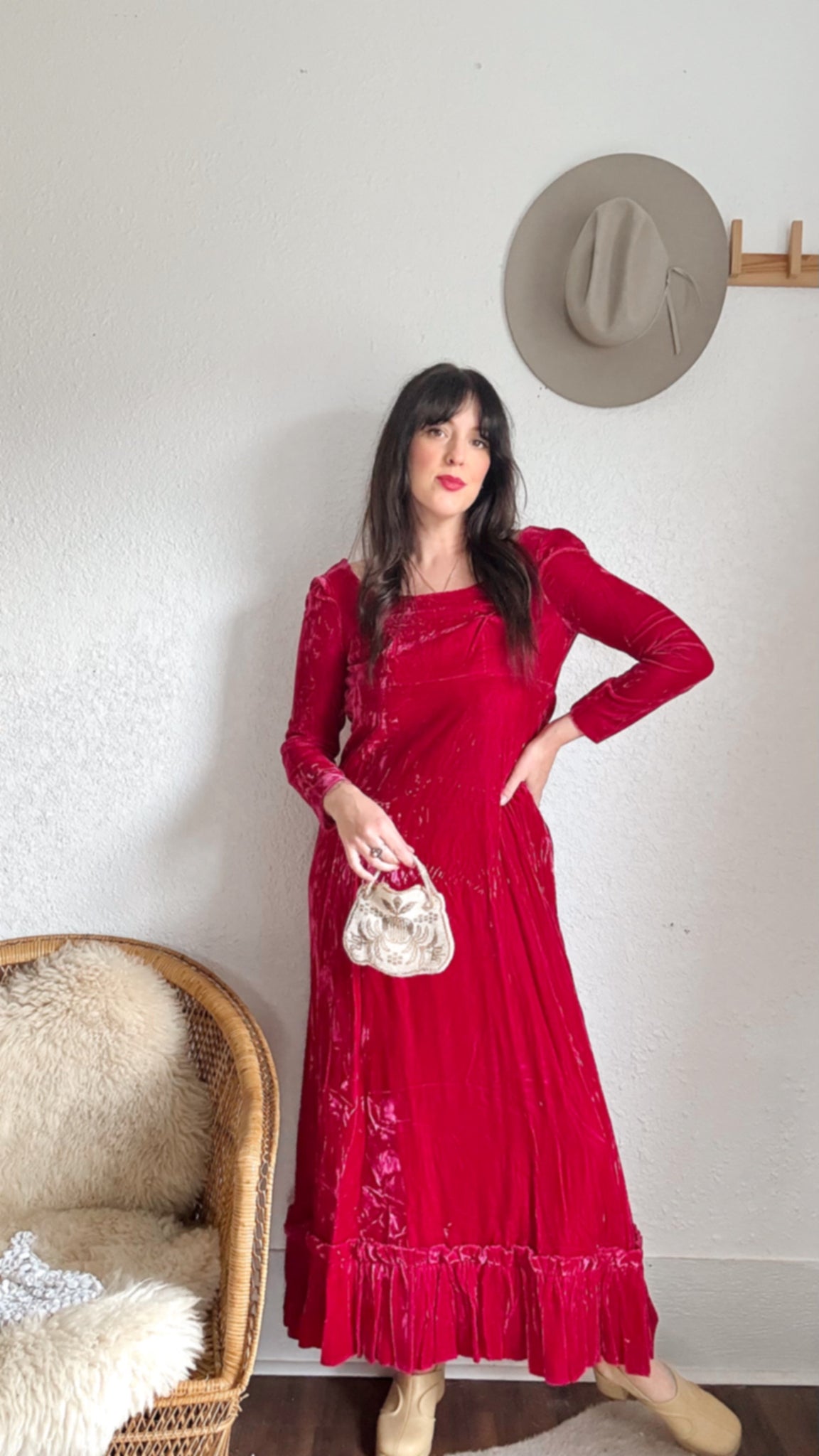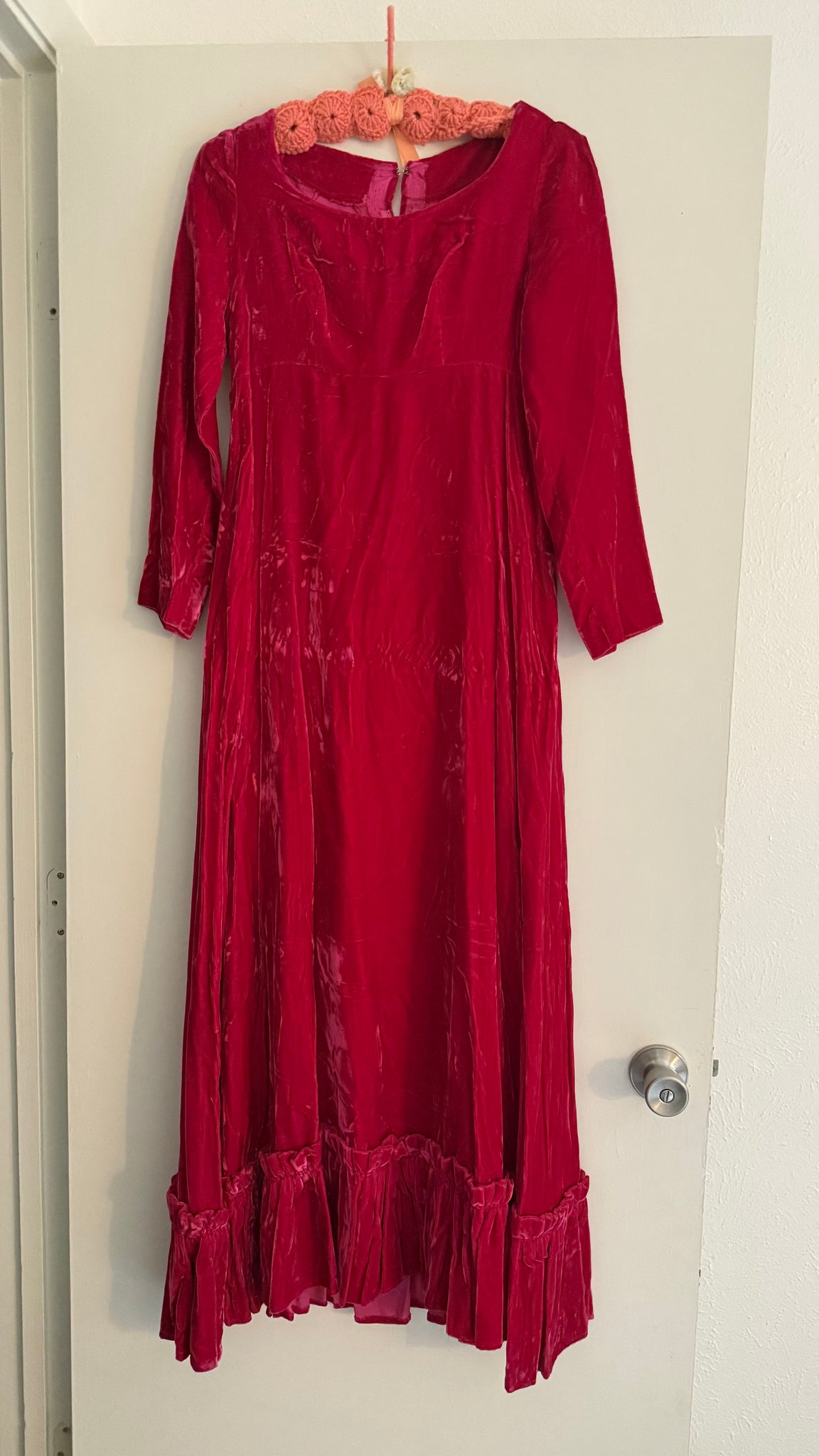 condition: excellent condition, such a stunning piece!! The color is a little hard to capture in the photos. It has more of a pink undertone slightly red. Full velvet throughout