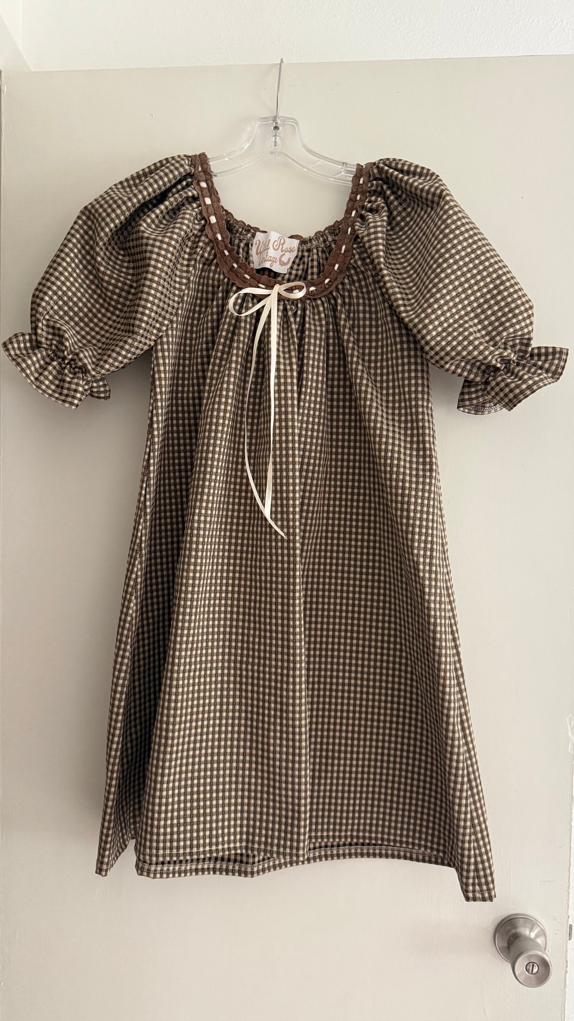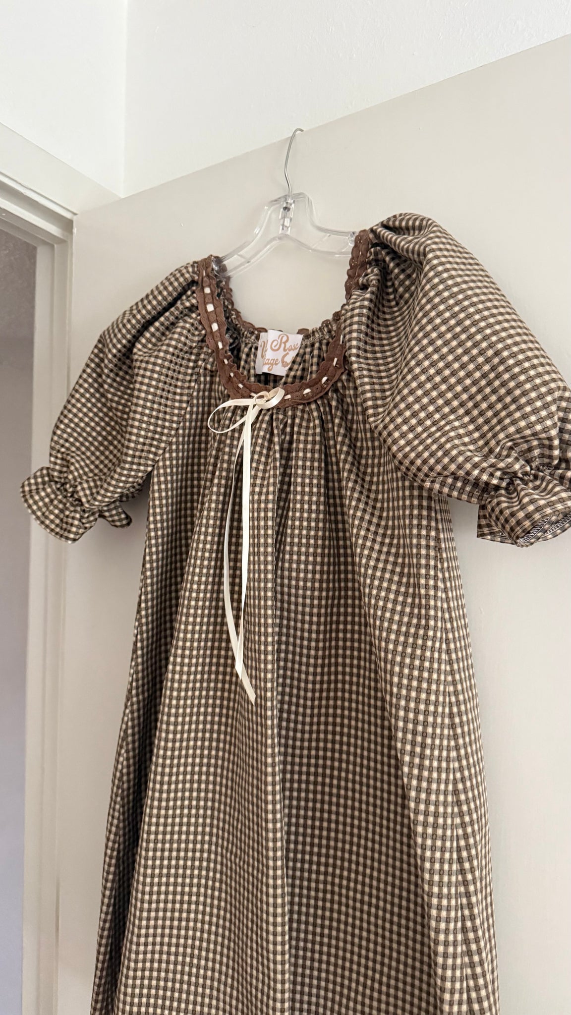 Condition: this material is beautiful, has a thicker feel. We hand dyed the trim on this dress. This was made from vintage material.