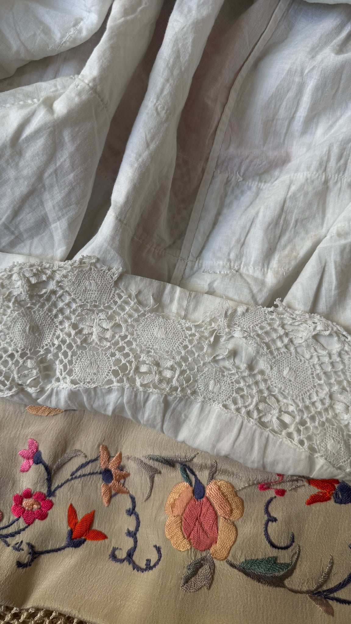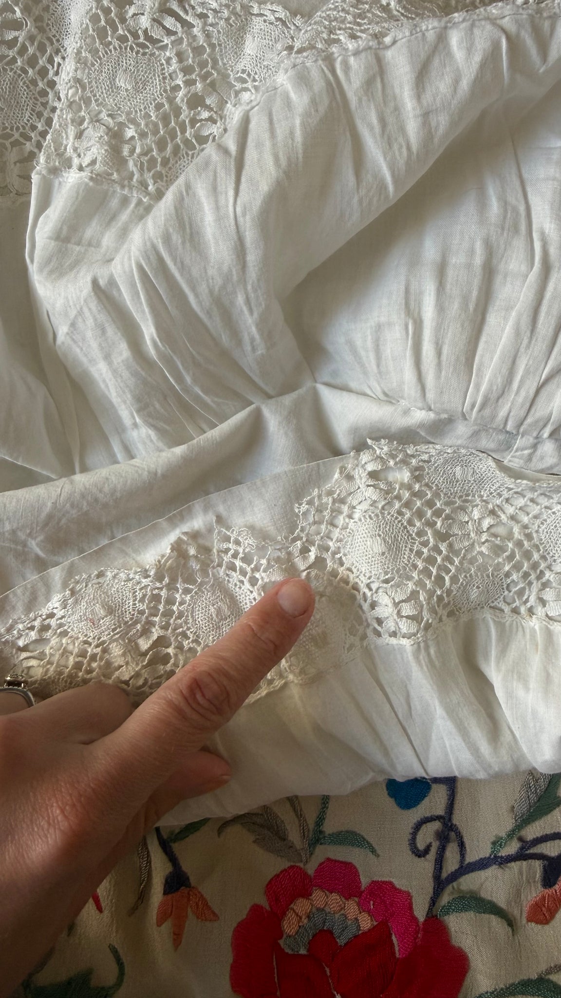condition: great condition, had a few repairs I’ve done on the macrame trim and has been soaked many times! Has been restored very well :)