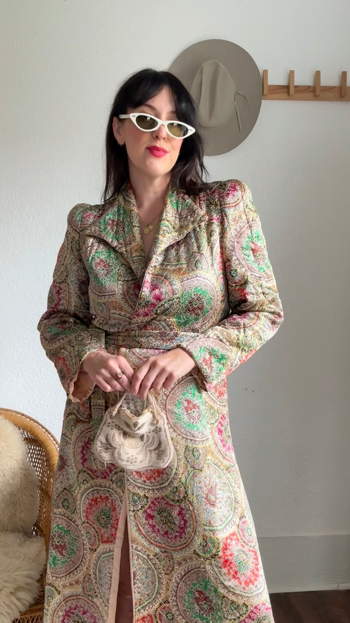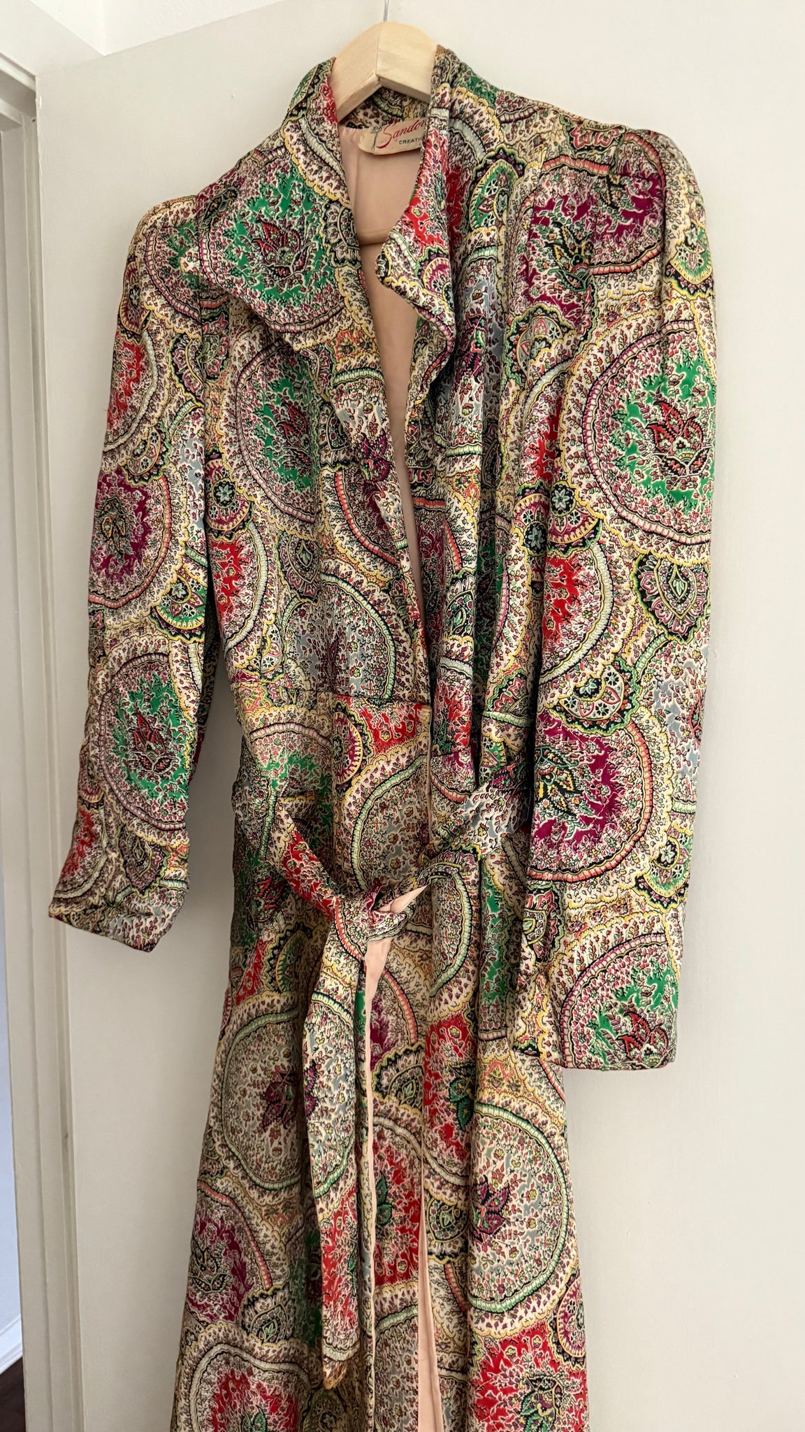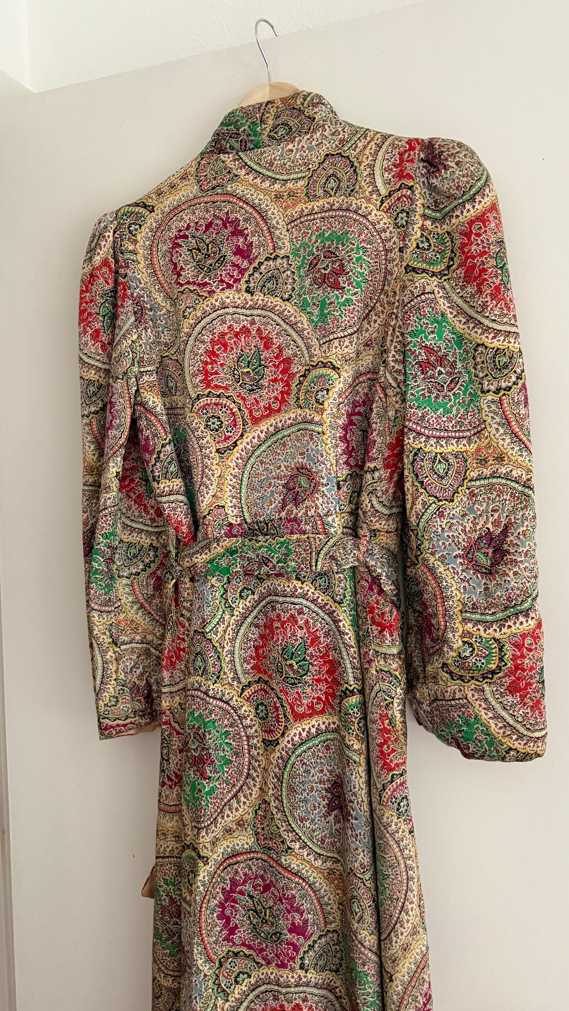 condition: beautiful condition no flaws on the robe. Only flaw is the robe tie ends are a little stained but not noticeable when worn
