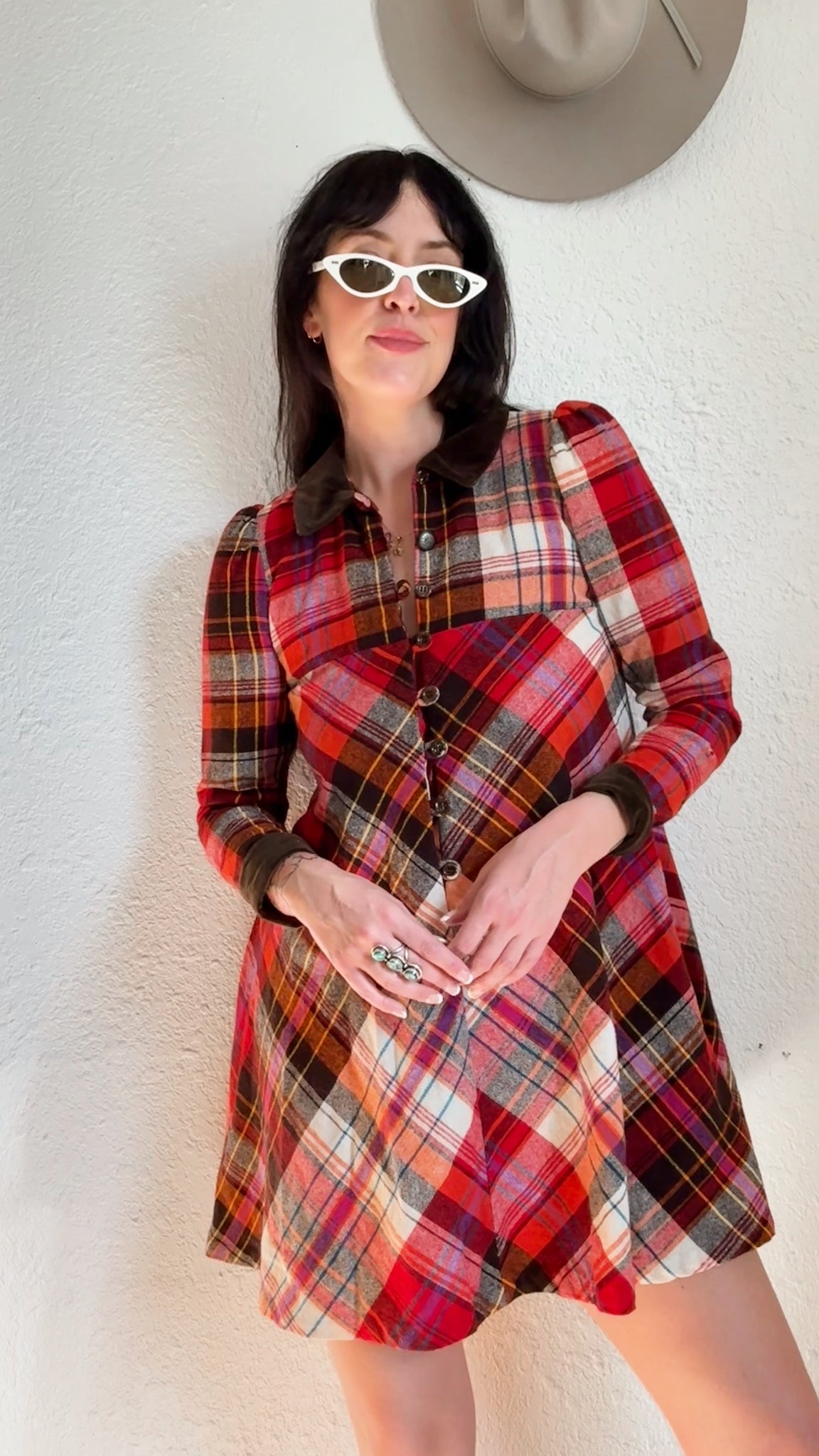 • Load image into Gallery viewer, Vintage 70s plaid mini dress