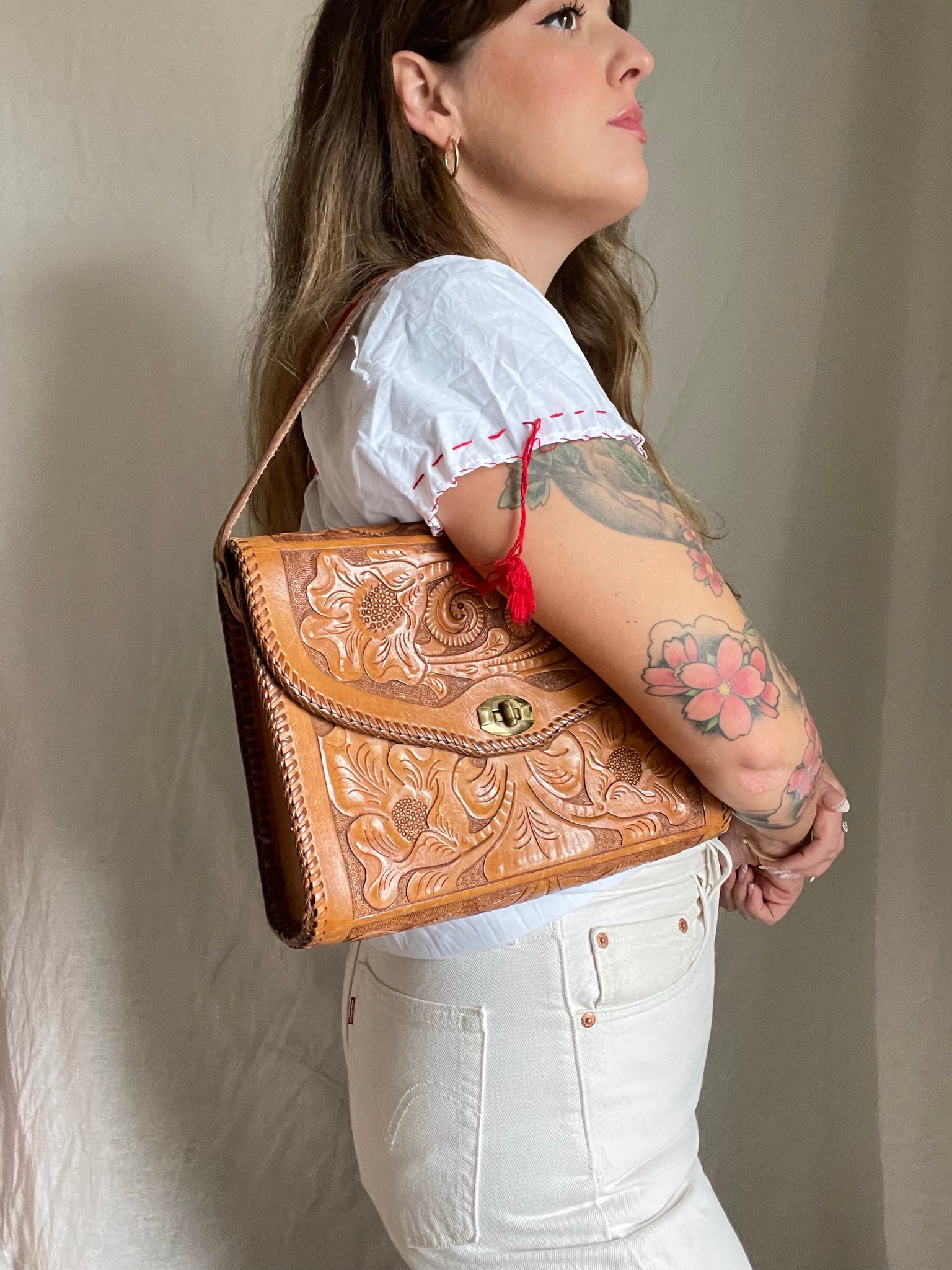 Item: Vintage tooled leather bag